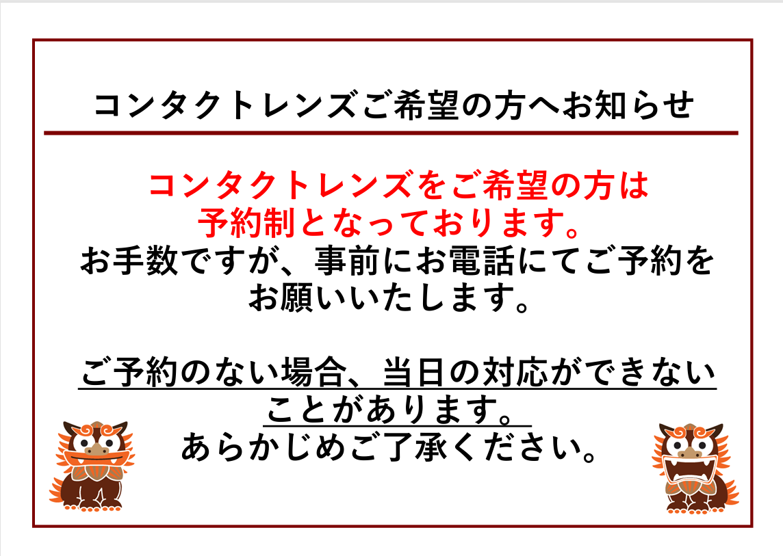※コンタクトレンズをご希望の場合は予約制となっております。