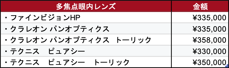 コンタクトレンズの装用を目的としている方にかかる費用は次の通りです。